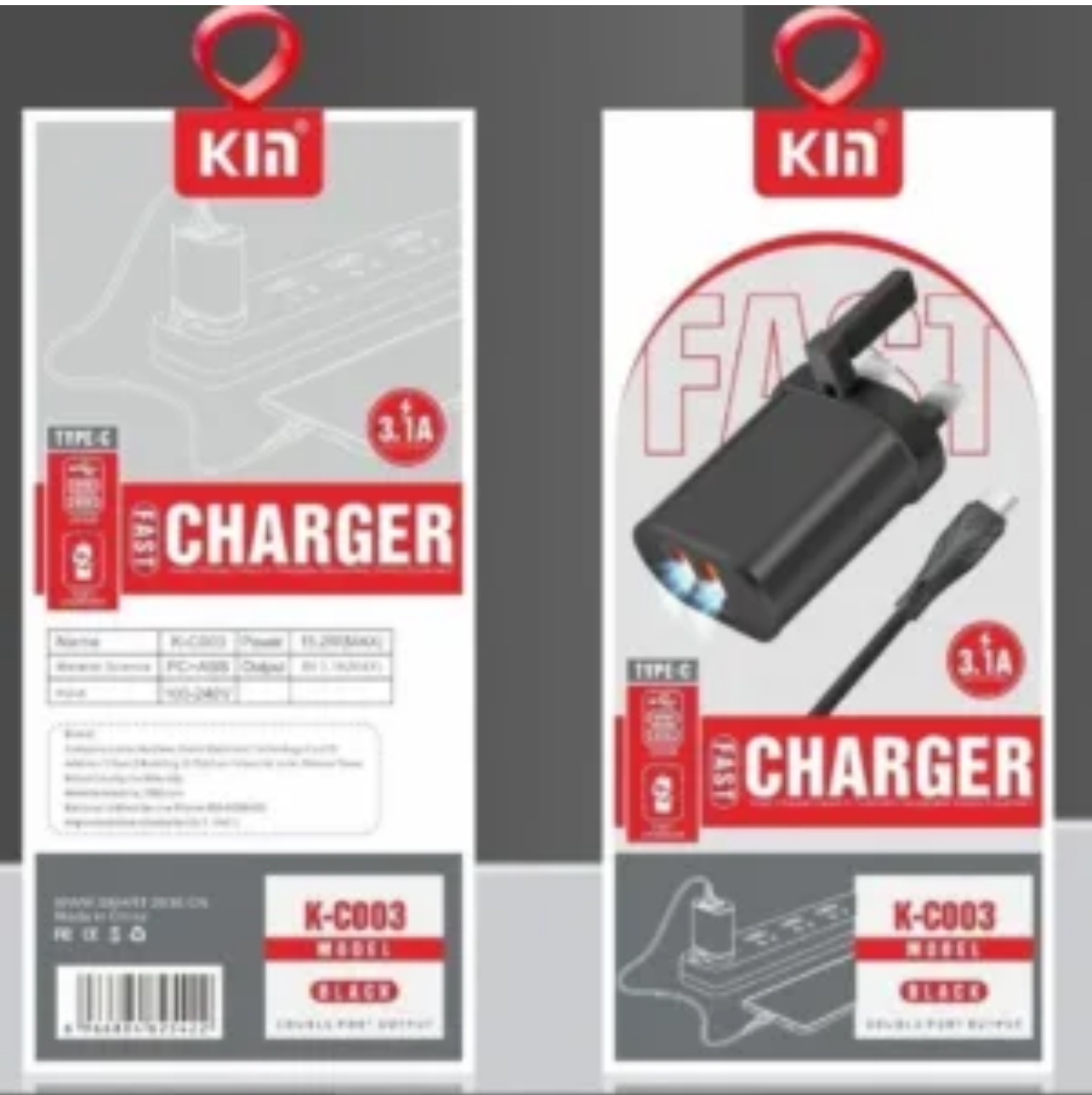فيش شاحن جداري بمنفذين USB K-C003 fast