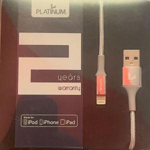 كيبل شاحن آيفون بلاتينيوم قماش لون ابيض